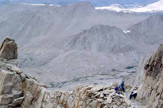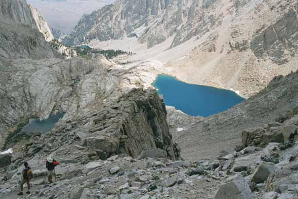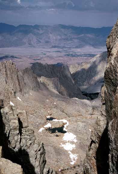 Our revised plan was to hike back over the Sierran crest via Arc Pass to an east-side camp, hit the main Mount-Whitney trail a day later, and go to the summit that way. We had planned to go out this way anyhow at the end of the trip.
