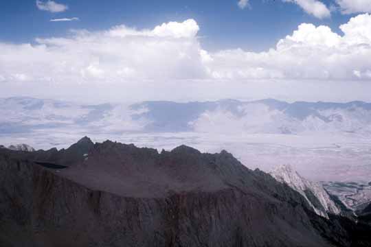 Mount Langley (14,026') to the north. When Clarence King made his second failed attempt to climb Mt. Whitney in 1864, he climbed this peak by mistake and claimed victory. (0207A-16).
